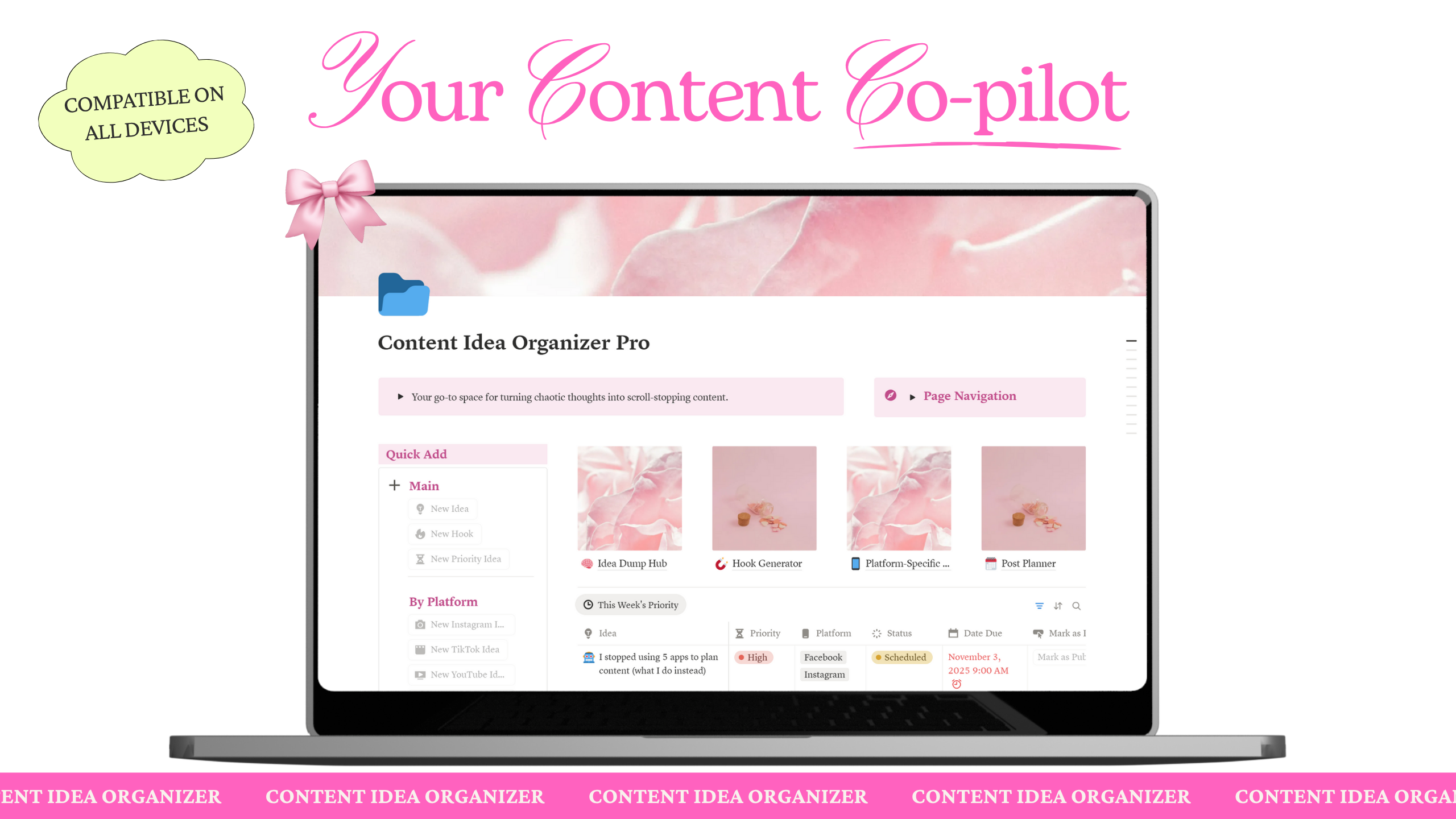 This Content Idea Organizer is a digital product with instant access.