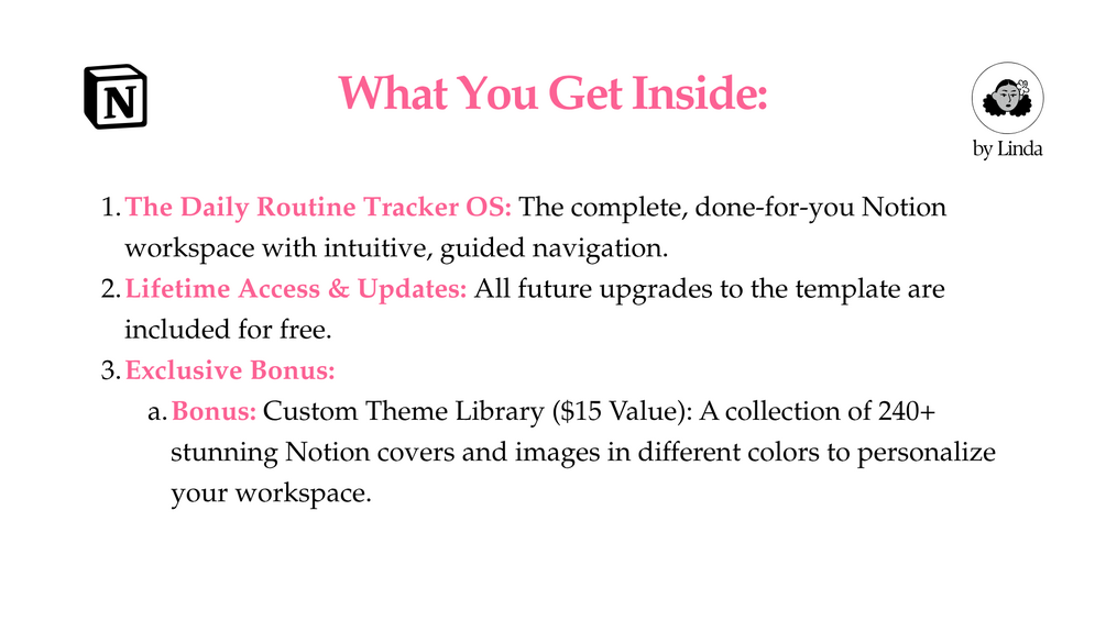- The Daily Routine Tracker OS: The complete, done-for-you Notion workspace with intuitive, guided navigation.