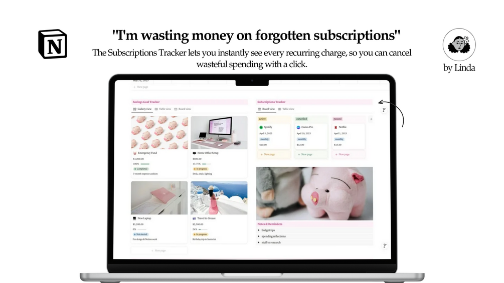 - Smart Reminders- Get gentle nudges inside Notion so all bills are paid on time.