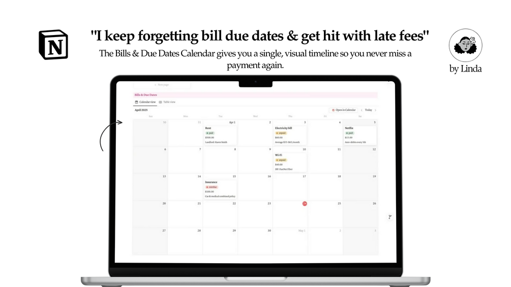 - Smart Reminders- Get gentle nudges inside Notion so all bills are paid on time.