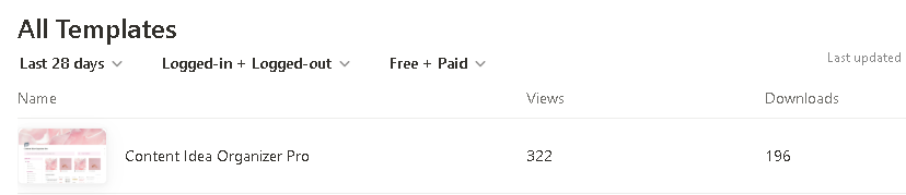 Out of 322 views on my Notion template, I got 196 downloads.