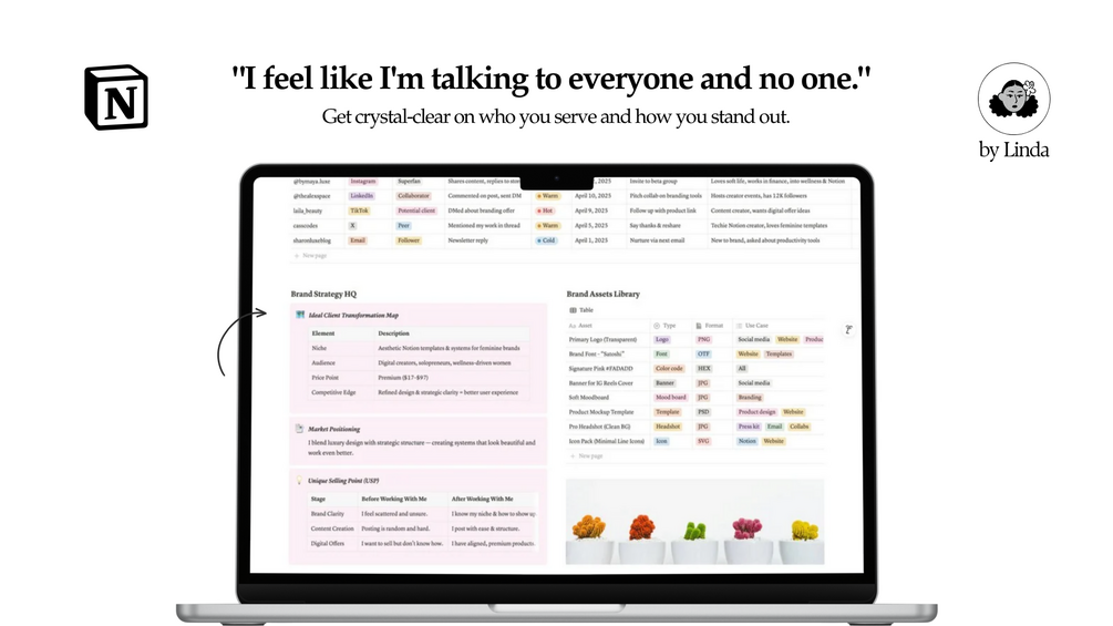 Build a personal brand that’s clear, consistent, and actually drives income, all in one Notion system