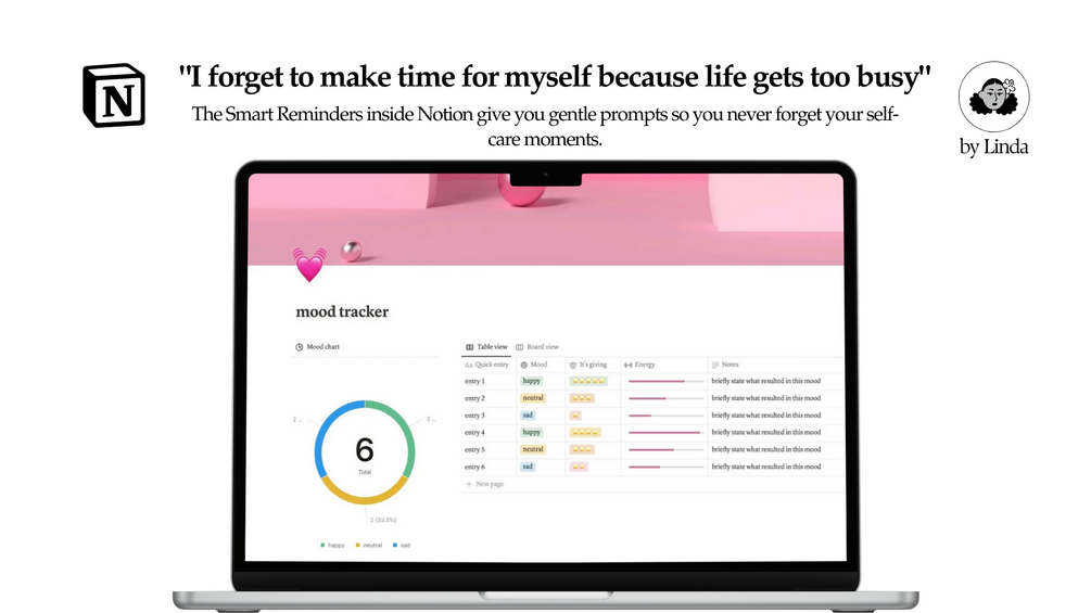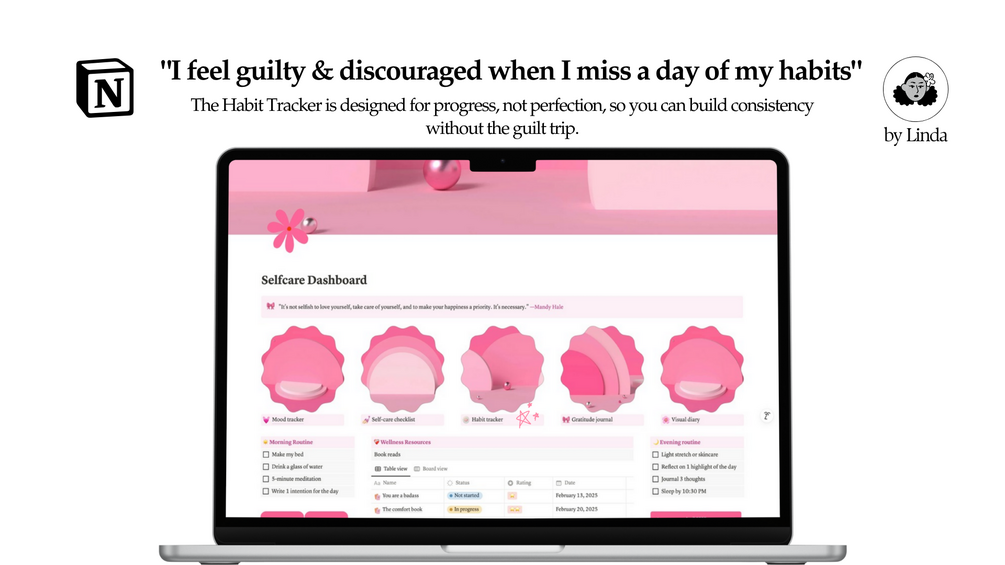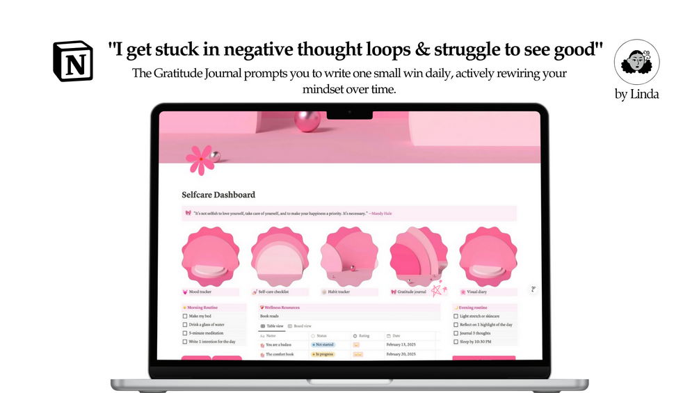 - Smart Reminders- Get gentle prompts inside Notion so you never forget your self-care moments.