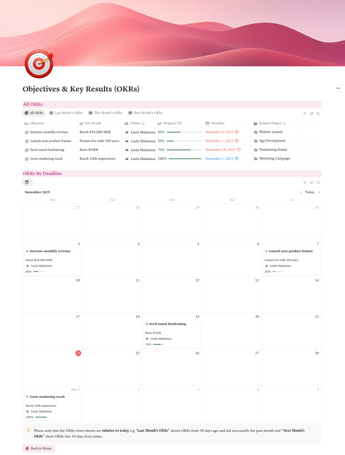 Objectives & Key Results Tracker