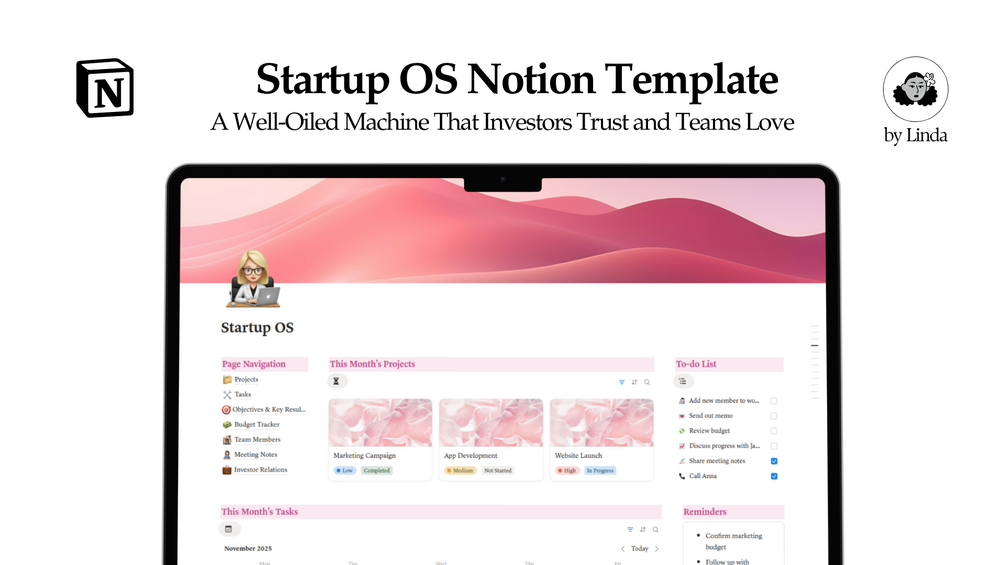Startup OS is a fully-built Notion operating system for early-stage startups that want clarity, speed, and control, without process overhead.