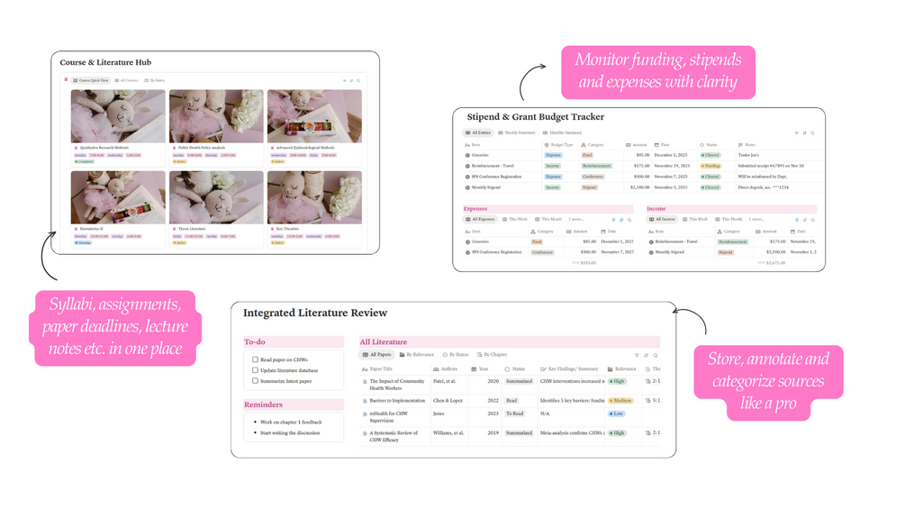 A centralized Notion workspace that automates the busywork of grad school so you can focus on what actually matters: your research.